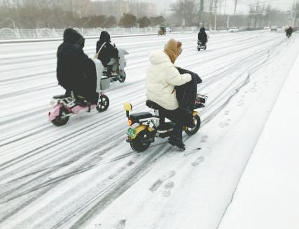 昨天一早天气阴沉,空气中透着寒意,市民纷纷加厚衣物出行。中午时分,市区上空飘起零星雪花。14时许,雪花越来越密。一个小时后,雪花变成冰粒,密密麻麻的冰粒落在彩钢瓦上发出沙沙的响声。很快,冰粒变成了雪花。不过,雪花越来越密,伴随着刮起的大风,远处的视线很模糊。不一会儿,整个城市就披上了一层白雪。风时大时小,但雪势依然很急。