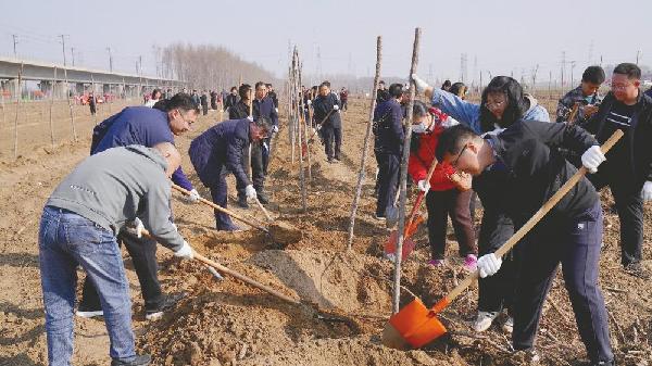 ②3月12日,河北政义城建建筑工程集团有限公司党委组织部分党员在祥和大街城南公园开展义务植树活动。本报记者 韩文洲通讯员 李华摄