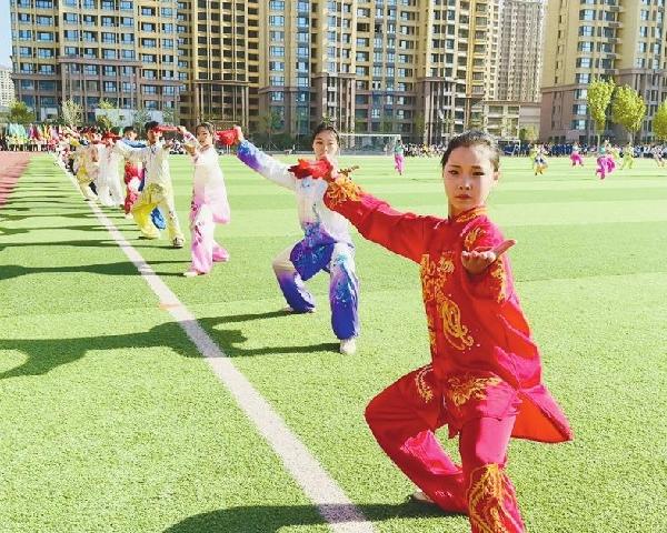 4月23日,襄都区首届中学生田径运动会开幕。全区12支参赛队伍、近500名体育健儿将进行10个田径运动项目的角逐。当天,千余人参与的团体操及武术、舞蹈等表演,从多方面展现了我市中学生澎湃的活力和朝气。(邢台新闻传媒中心记者 张婵娟 通讯员 康茂庆摄)