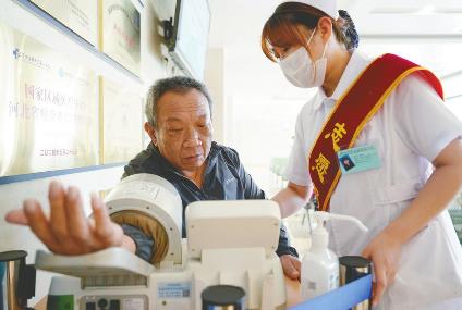 8月6日,一位老人在邢台市中心医院“敬老爱心驿站”测血压。近日,市老干部局依托户外劳动者驿站、公共医疗场所及现有社会公共场地资源,采取单位联建、资源共享、融入敬老元素等方式,创建了16个“敬老爱心驿站”。每个“敬老爱心驿站”都配置了书报架、桌凳、充电宝等设施,根据实际情况还增加了测血压、借用轮椅、文艺培训等项目,以此增强社会尊老、敬老、爱老、助老的意识,让老年人安享幸福安康的晚年生活。 (新华社发邢台新闻传媒中心记者陈雷摄)