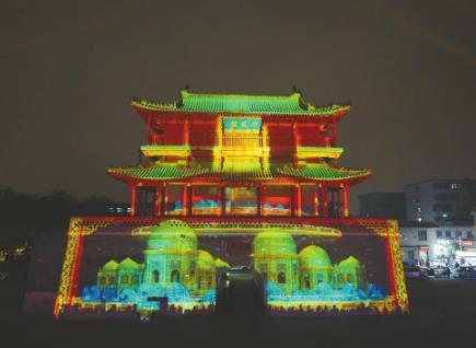 一月三十一日,大型沉浸式光影秀《大唐瓷都》在邢州古城清风楼正式上演。 本报记者 韩文洲摄
