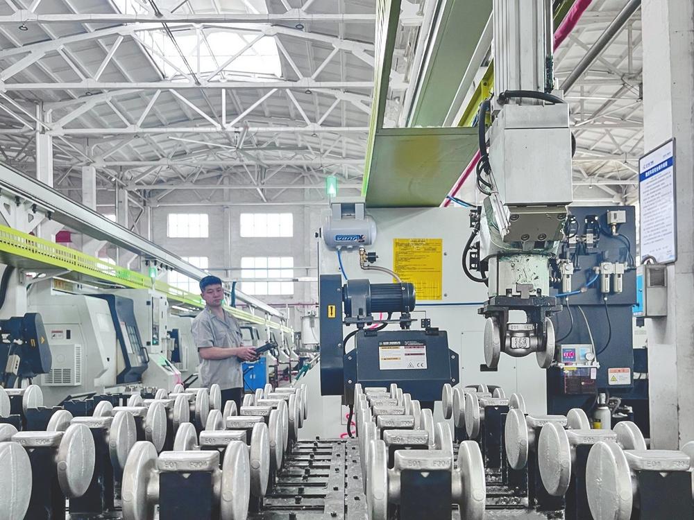 近日,在隆尧县远大阀门集团有限公司锻钢机加工数字化车间,员工操控桁架式机械手加工阀门产品。